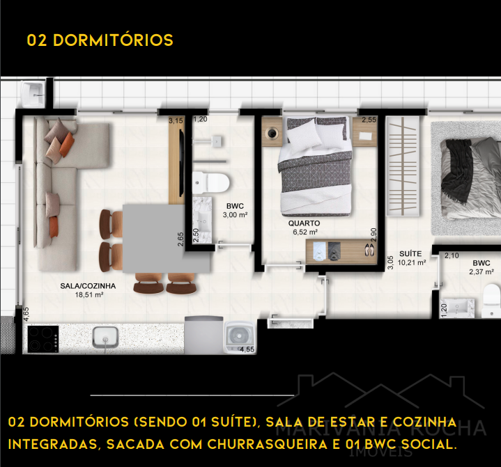 ➡️ 47 unidades com 01, 02 e 03 dormitórios;