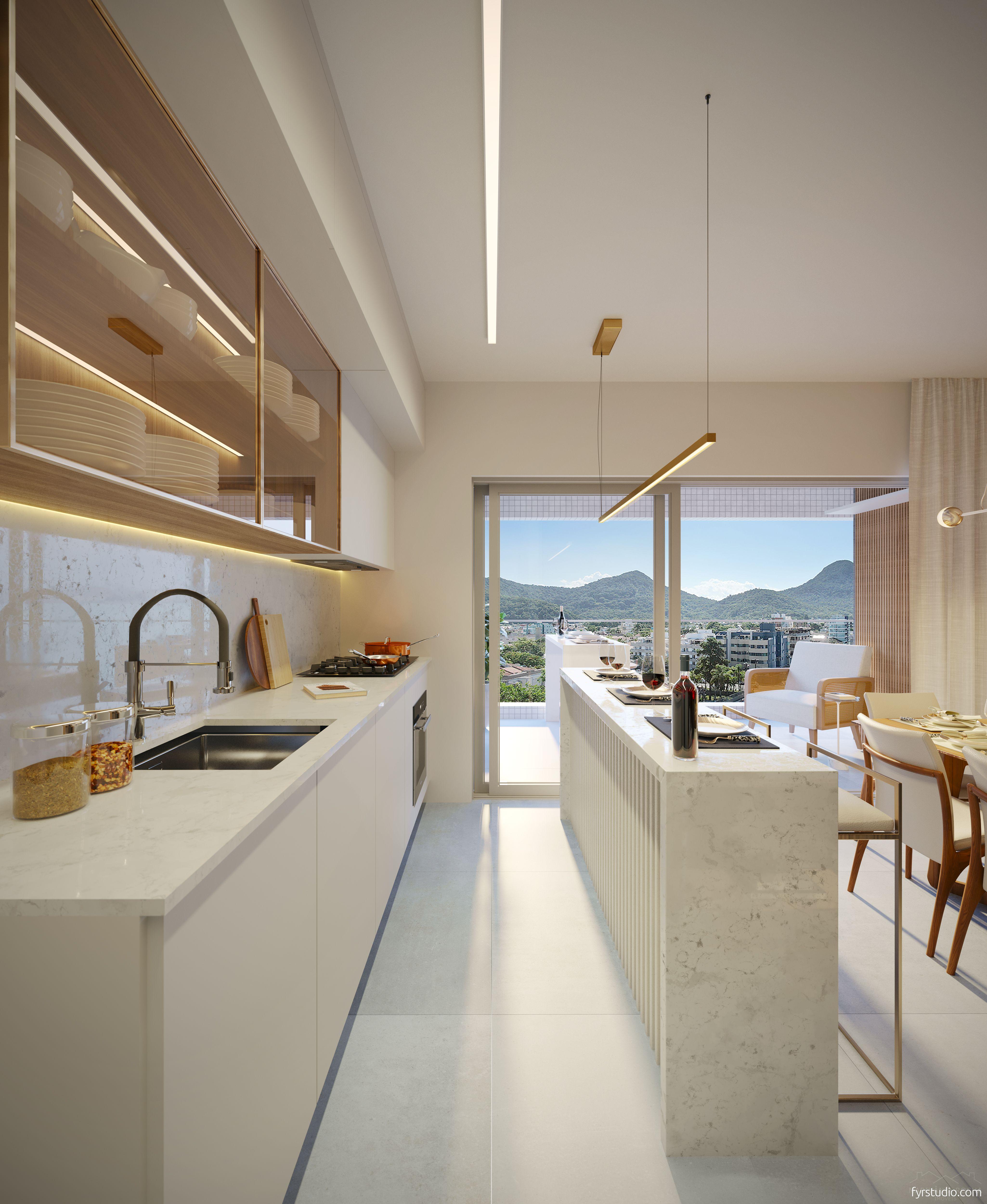 O empreendimento oferece design moderno, fachada com pastilhas, sacadas com vidro, armários individuais nas garagens e cozinha gourmet integrada.